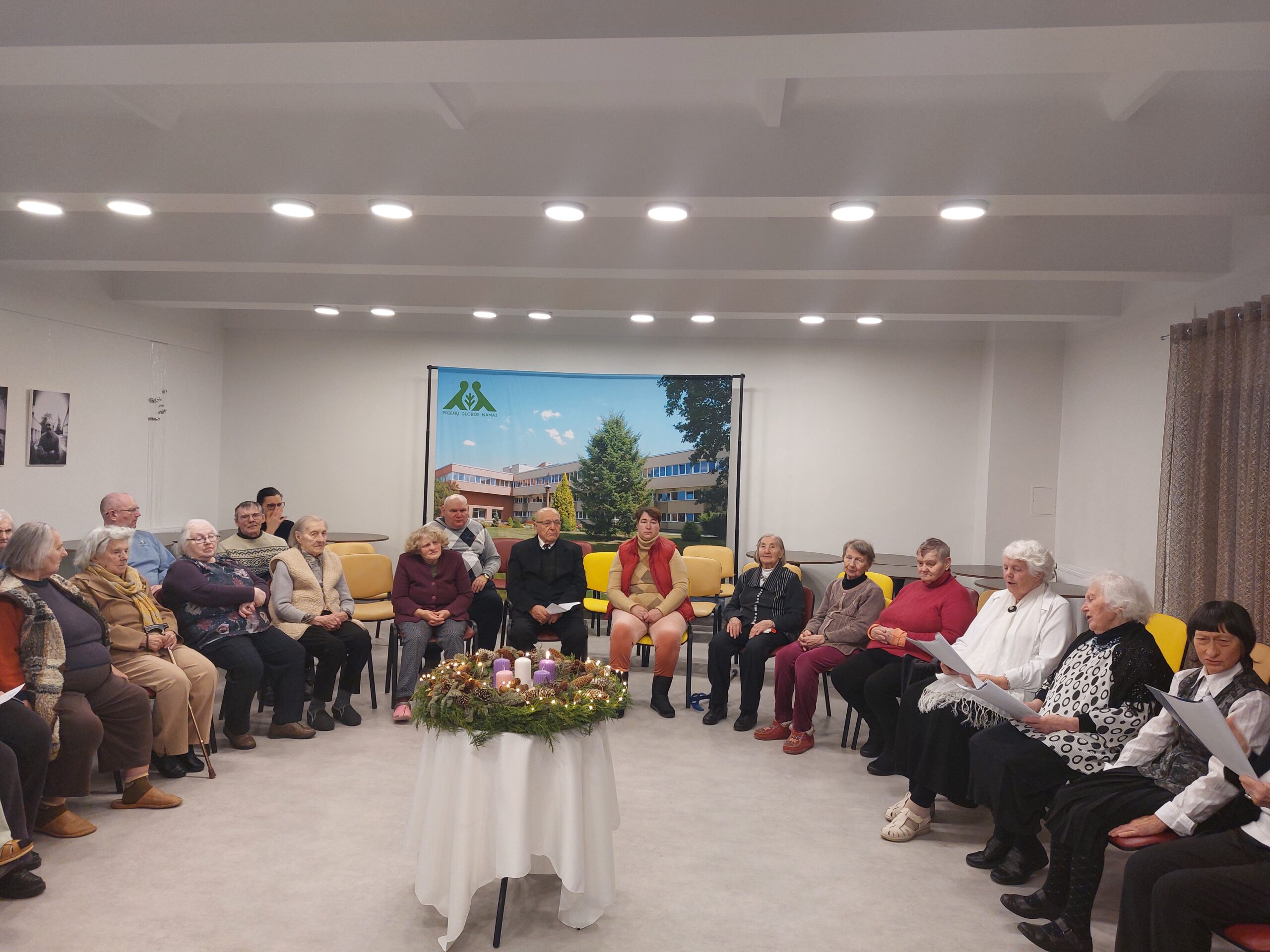 Sekmadienio popietę Globos namų gyventojai susirinko įžiebti Advento vainiką. Ši ceremonija žymi Advento, prieškalėdinio susikaupimo laikotarpio, pradžią ir simbolizuoja amžinybę, susitaikymą bei viltį. Advento vainiko pirmąją Pranašo žvakę uždegė gyventoja Živilė, linkėdama visiems daugiau šviesos ir tikėjimo. Susirinkusieji giedojo adventines giesmes, dainas, skaitė prasmingus posmus, belaukiant artėjančio Kalėdų stebuklo.