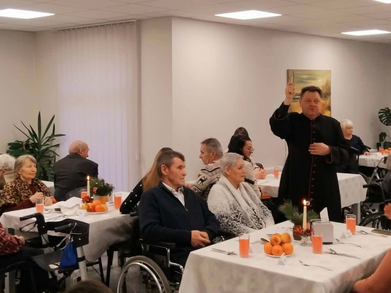 Šventų Kūčių popietę globos namų bendruomenė susirinko bendrai maldai ir širdžių artumui. Šventė prasidėjo Šv. Mišiomis, kuriose dėkojome už praėjusius metus ir pasitikome gimusį Išganytoją. Po šv. Mišių laukė jaukus pasibuvimas prie Kūčių stalo – paprastas, bet prasmingas bendrystės laikas, kupinas ramybės, šilumos ir nuoširdaus bendravimo. Tegul šis vakaras tampa vilties, tikėjimo ir meilės ženklu kiekvienam.