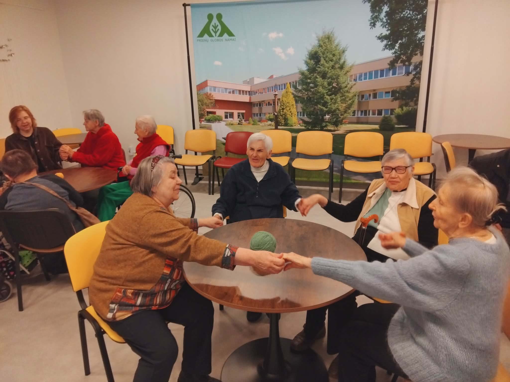 Vienas iš smagiausių momentų buvo spalvoto siūlo kamuoliuko žaidimas: kiekvienas dalyvis siuntė kamuoliuką šalia sėdinčiam ir linkėjo jam gražių žodžių. Toks paprastas, bet labai šiltas gestas suvienijo visus dalyvius ir sukūrė jausmą, kad salė virto vienu bendru tinklu – tinklu, kuris jungia globos namų bendruomenę, stiprina tarpusavio ryšius ir simbolizuoja žmogaus teisių svarbą kiekvienam.